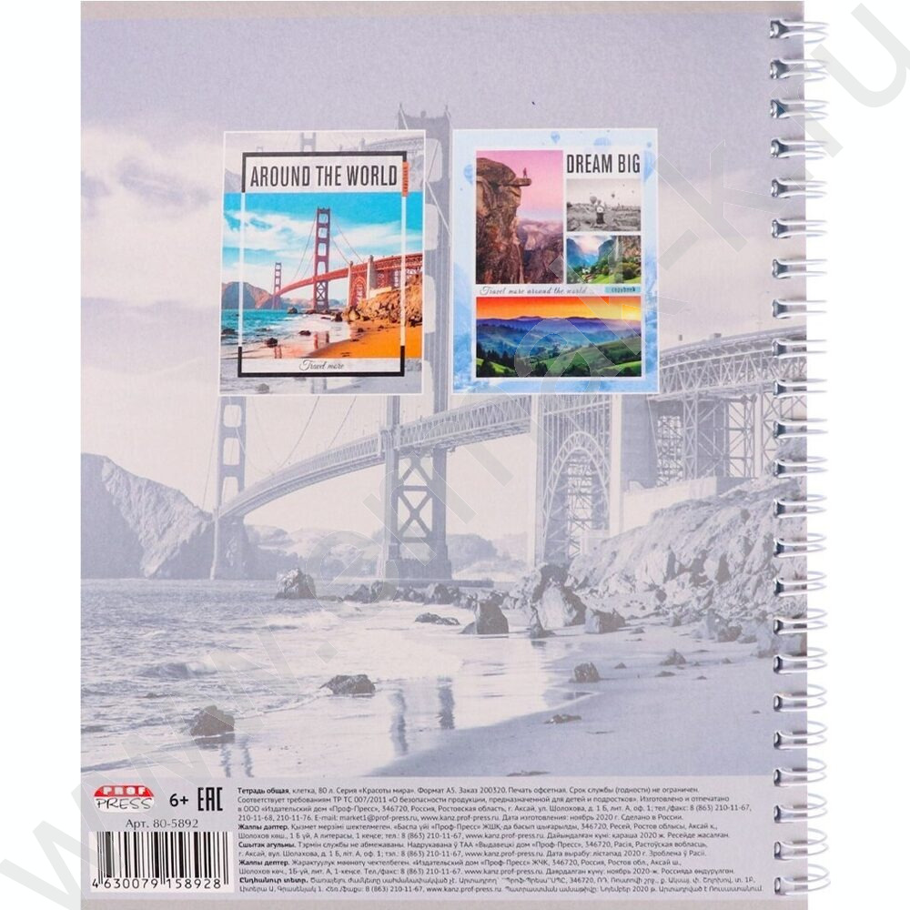 Тетрадь 80л клетка/спираль/двойная "Красоты мира" ассорти