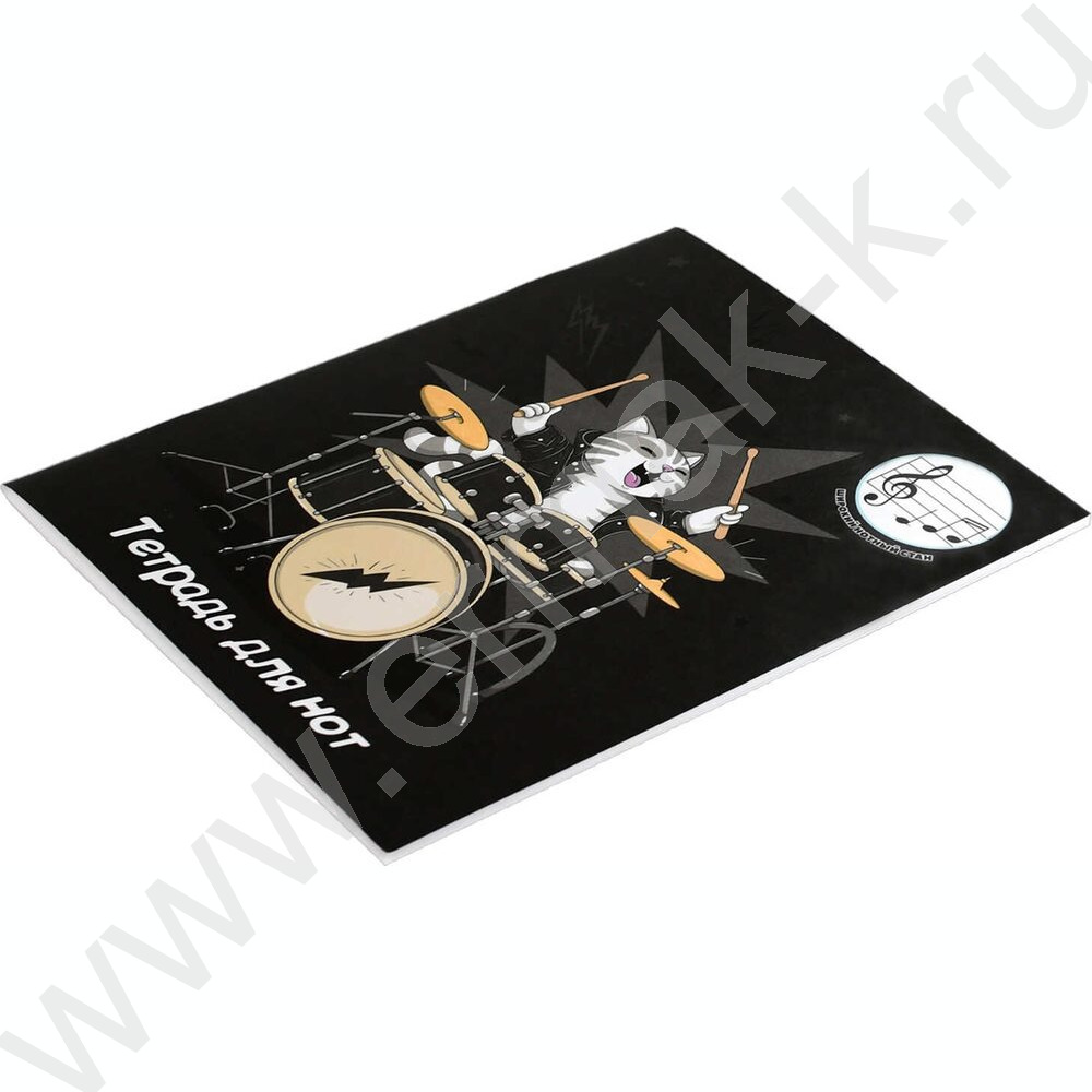 Тетрадь для нот 24л А5+ мл.классы "Кот-барабанщик" расширенный нотный стан