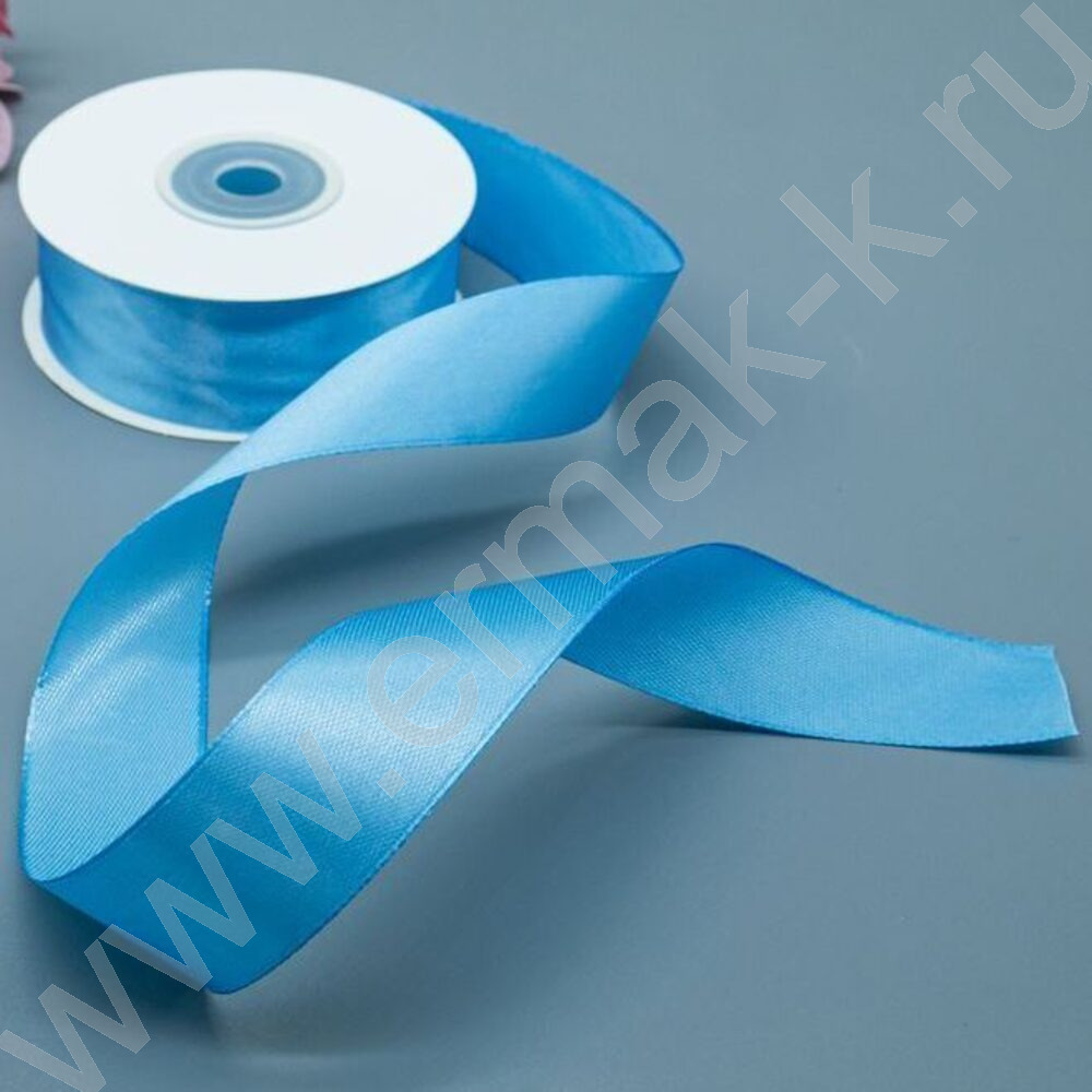 Лента атлас 2,5см*22,85м 25ярд ярко-голубая