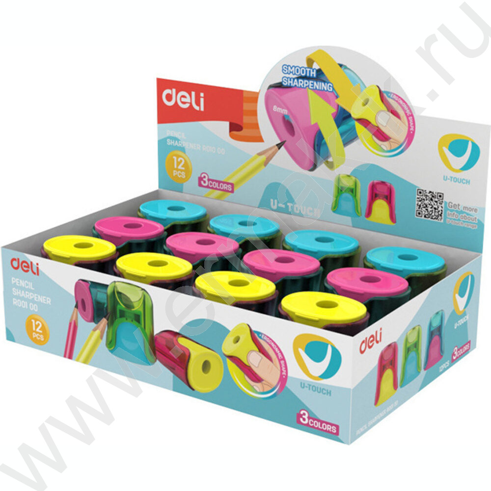 Точилка 1отв. пластик U-touch ассорти дисплей