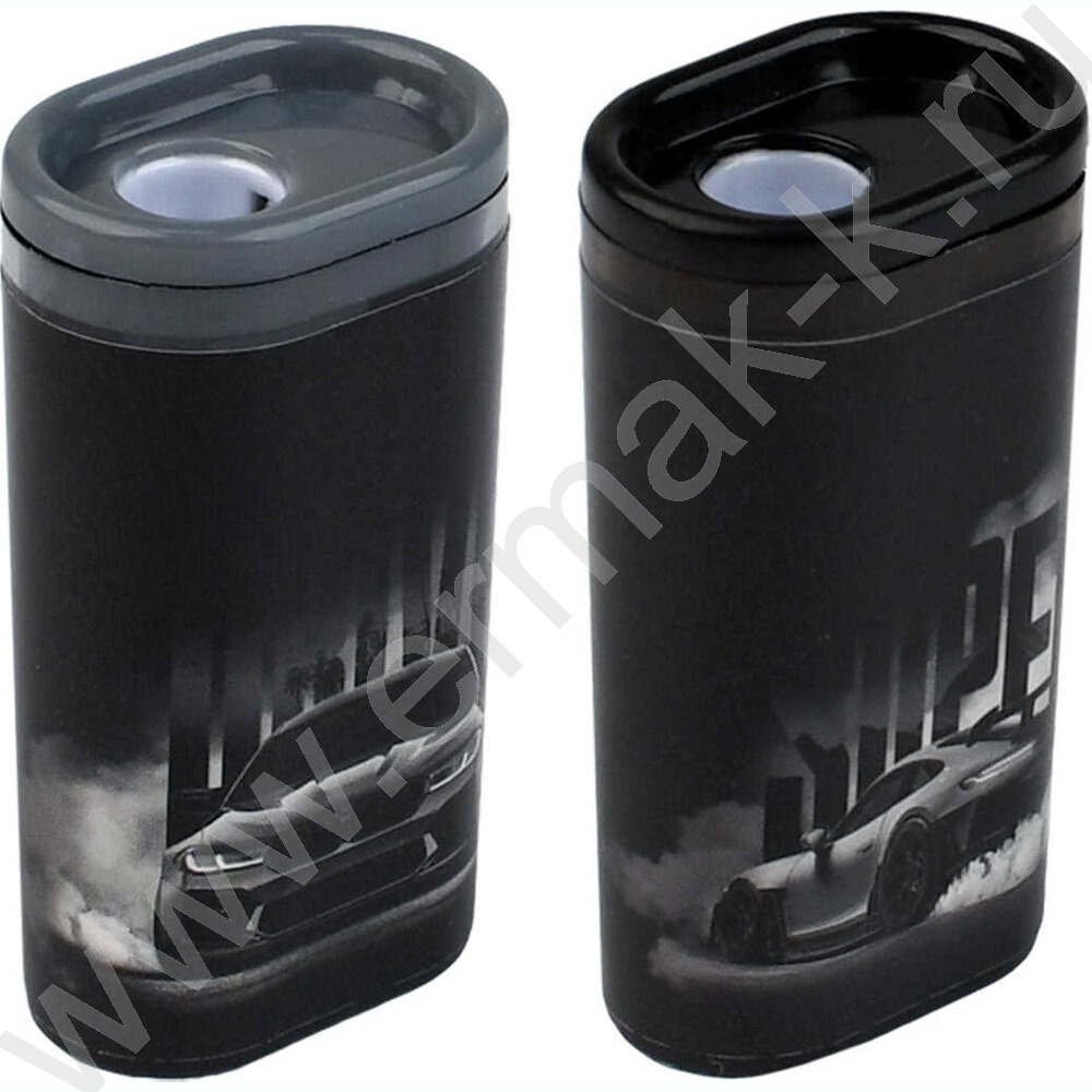 Точилка 1отв. пластик "Форсаж" /с контейнером /ассорти NEW