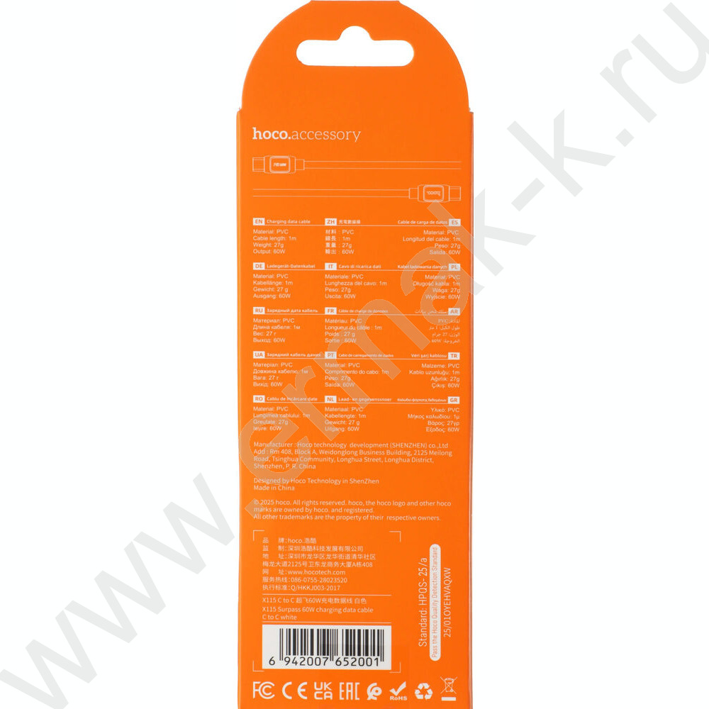 Кабель X115 52001 USB Type-C (m)-USB Type-C (m) 1м /белый NEW