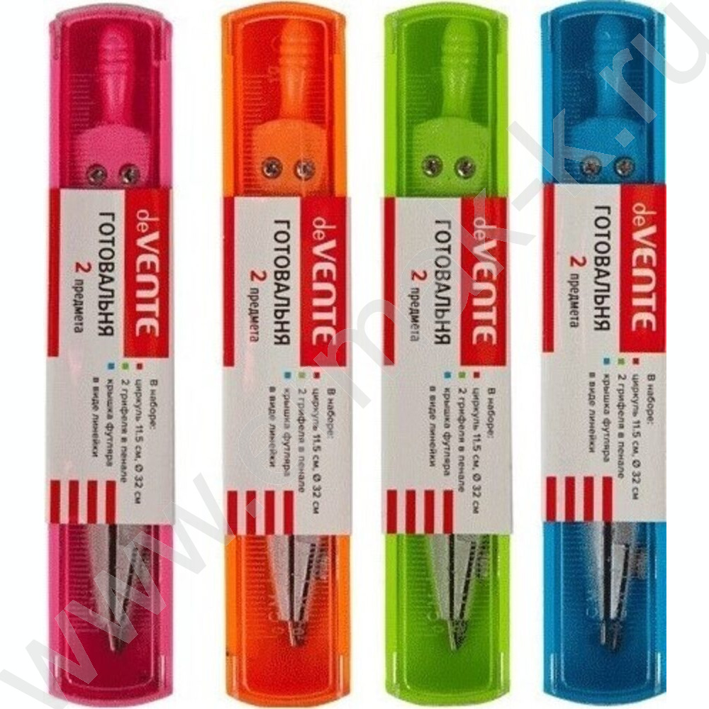 Готовальня 3грифеля в комплекте пл.футляр с линейкой /ассорти
