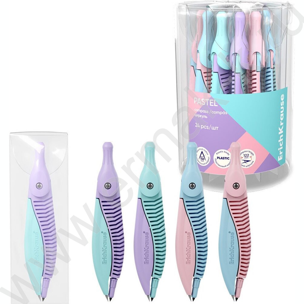 Циркуль 12,2см пластиковый Pastel, ПВХ чехол /ассорти