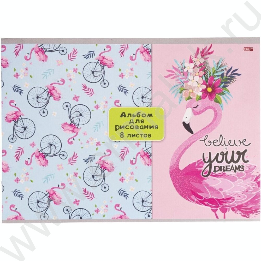 Альбом д/рисования 8л "Фламинго на велосипедах"