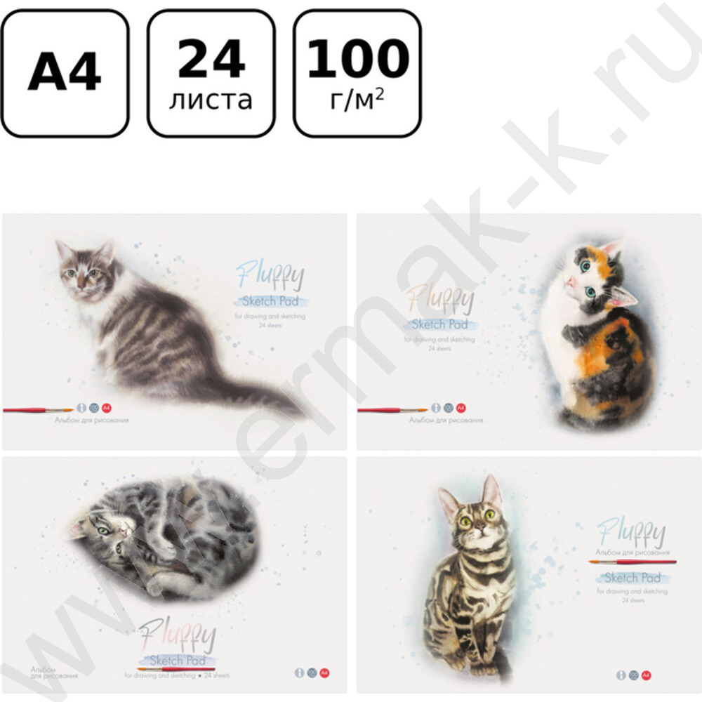 Альбом д/рисования 24л "Акварельные котики" ассорти