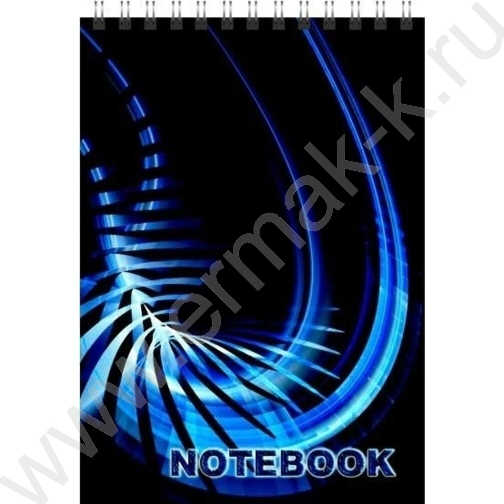 Блокнот 50л А6 спираль верхняя "Синий на черном" /без линовки