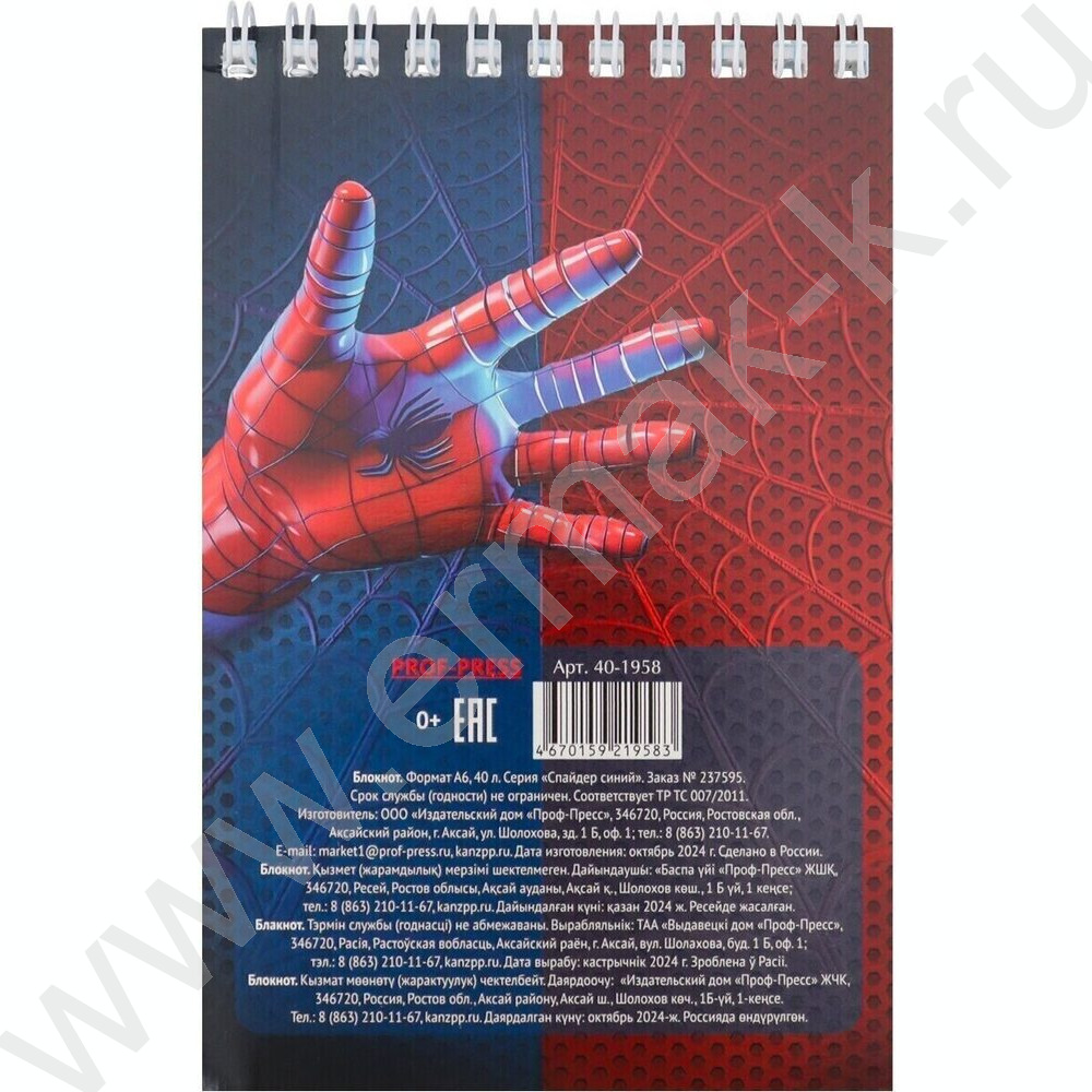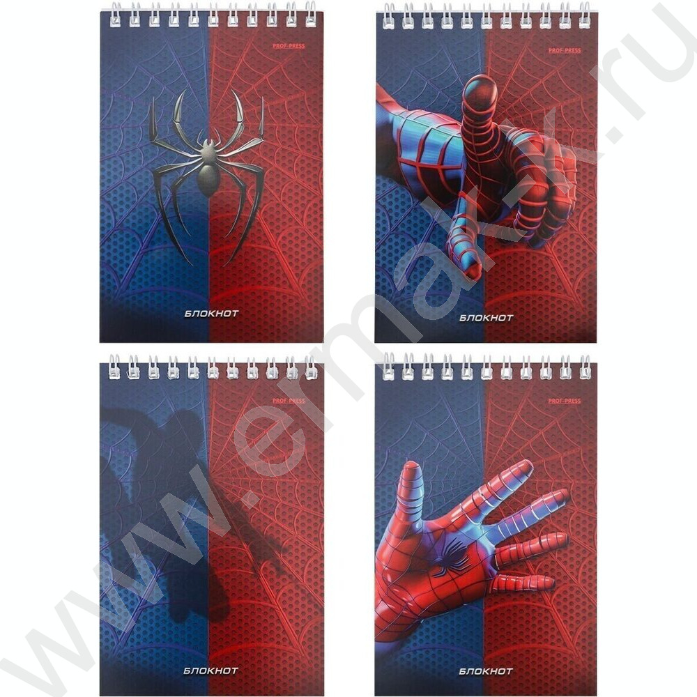Блокнот 40л А6 спираль "Спайдер синий" ассорти