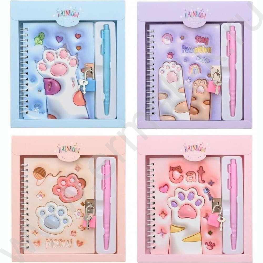 Блокнот 48л 15*11см спираль "Лапки" замочек+авторучка,в подарочной упаковке