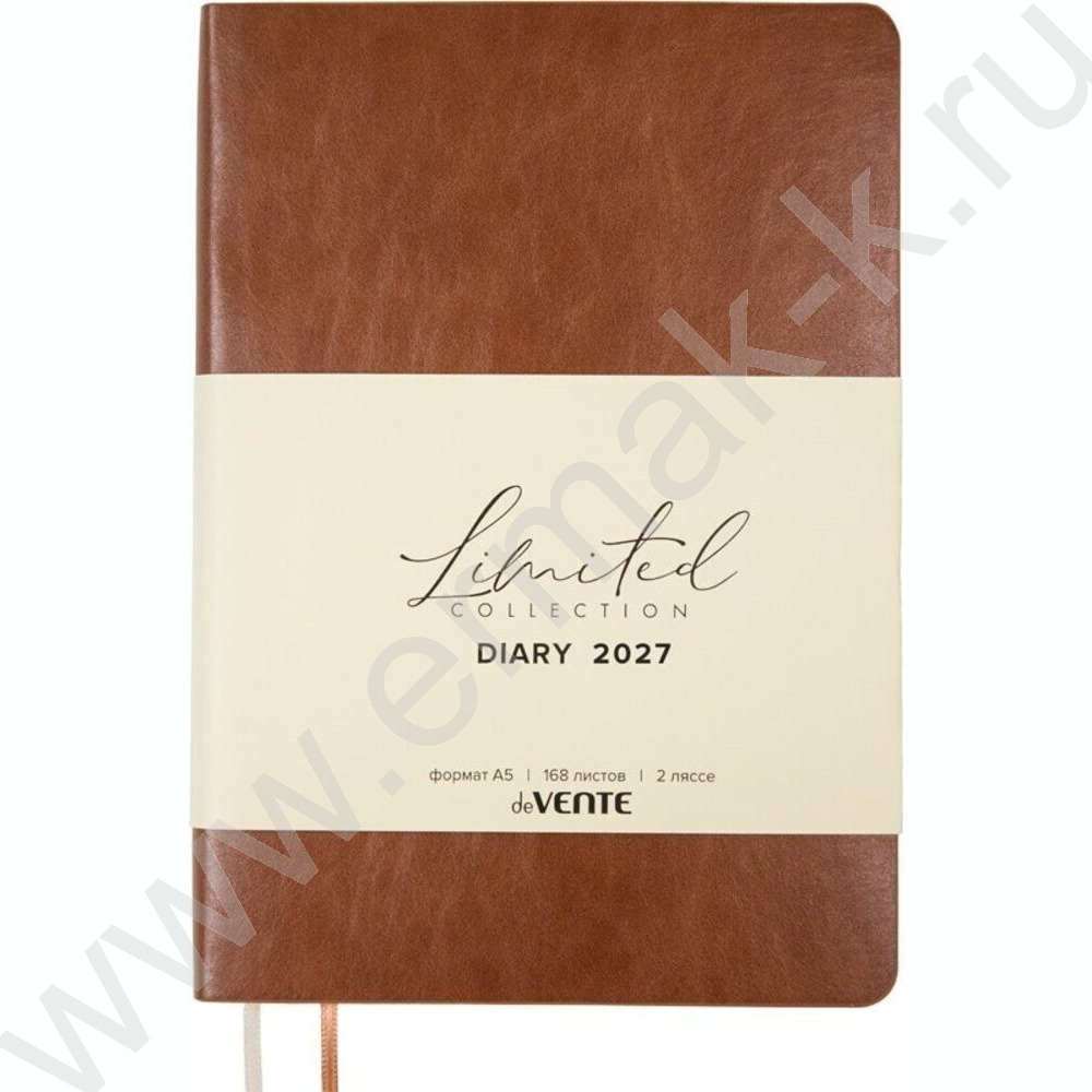 Ежедневник 2027г A5 168л "Orto" светло-корич. с светло-корич. срезом /мяг.обл. иск.кожа /2 ляссе NEW