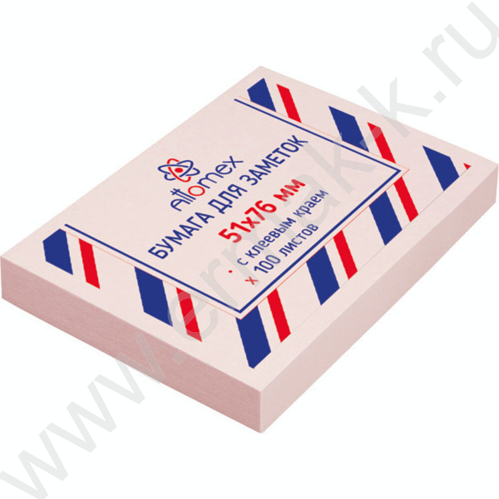 Бумага д/записей 51*76мм /100л, 75г/м², розовая с липким краем