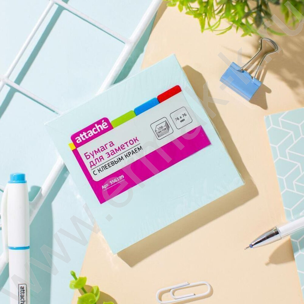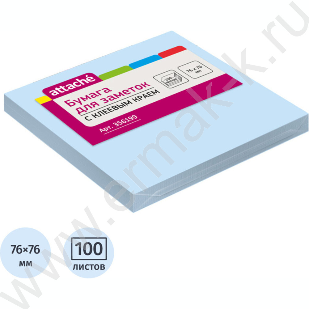 Бумага д/записей 76*76мм /100л, 62г/м², голубая с липким краем