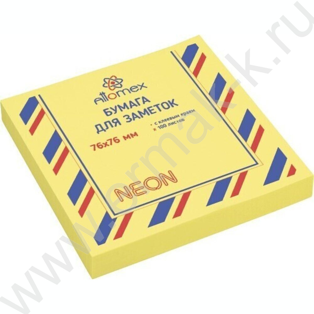 Бумага д/записей 76*76мм /100л, 75г/м², неоновая желтая с липким краем