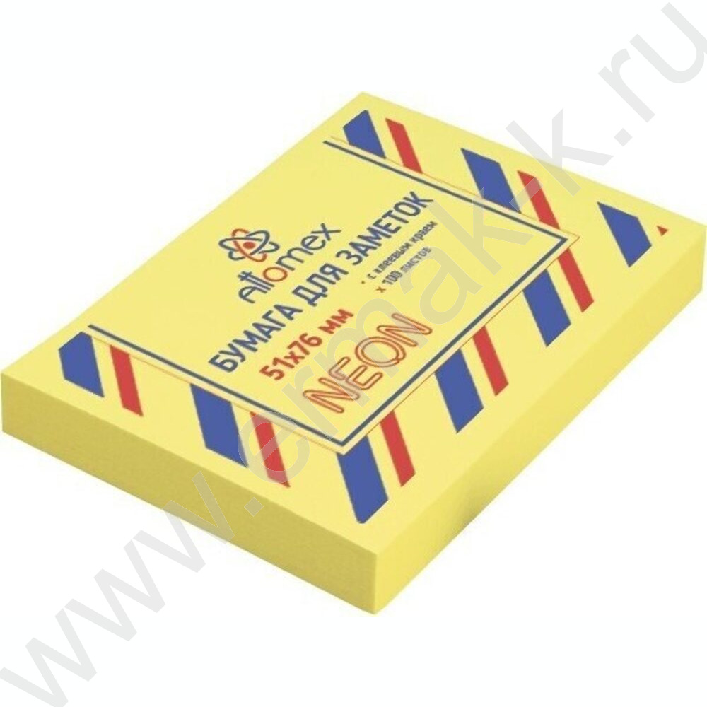 Бумага д/записей 51*76мм /100л, 75г/м², неоновая желтая с липким краем
