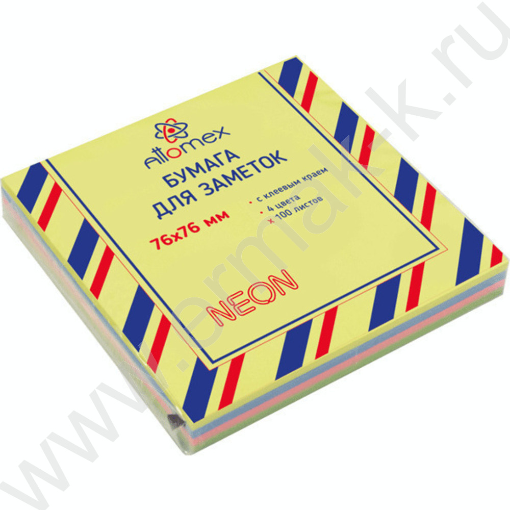 Бумага д/записей 76*76мм /100л, 75г/м², 4 неоновых цвета