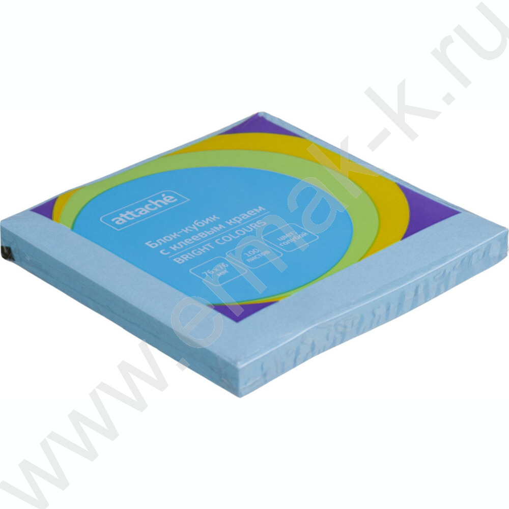 Бумага д/записей 76*76мм /100л, 62г/м², голубая с липким краем "Bright colours"