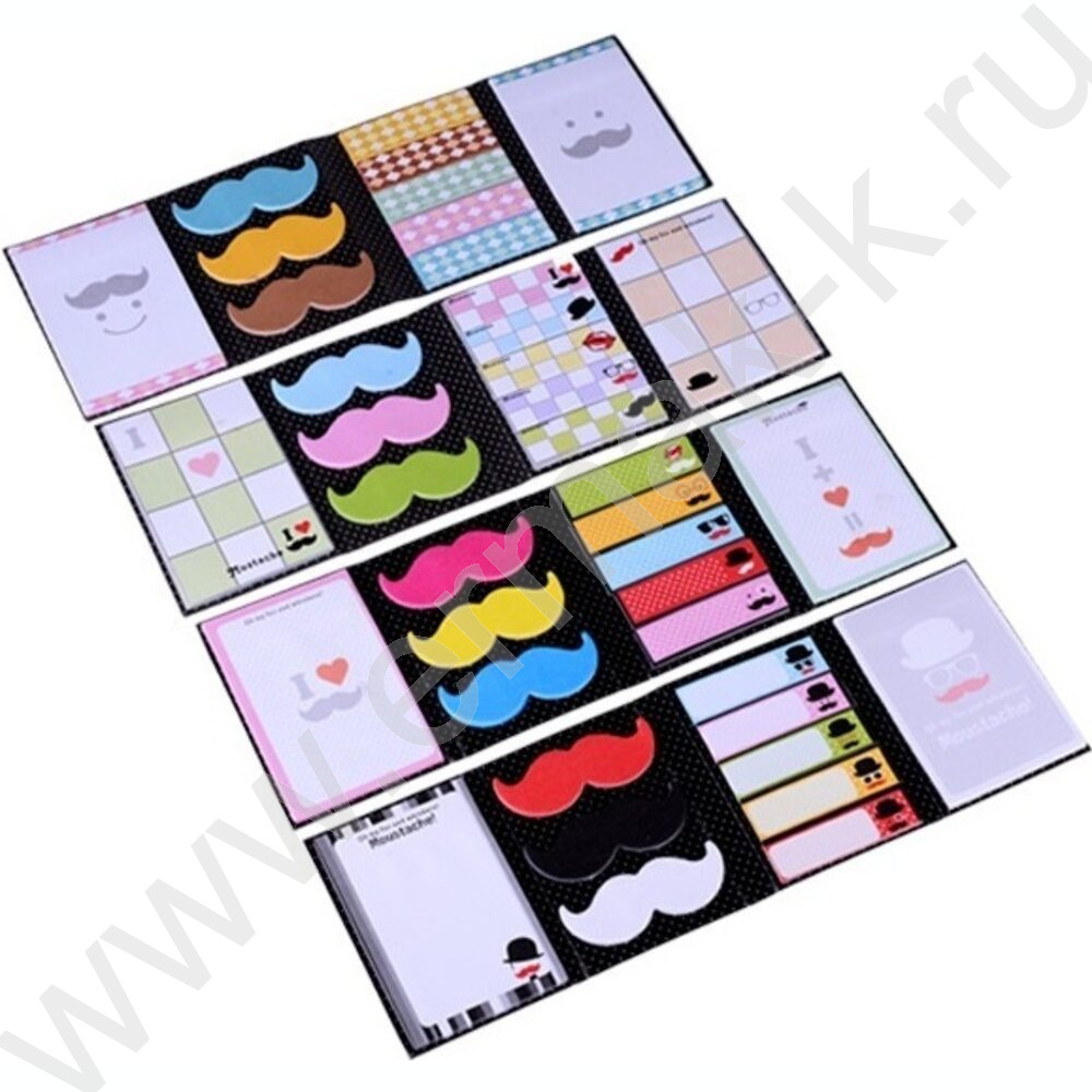 Бумага д/записей c липким краем 5 блоков полос + 3 блока усов + 2 квадратных блока по 18 л