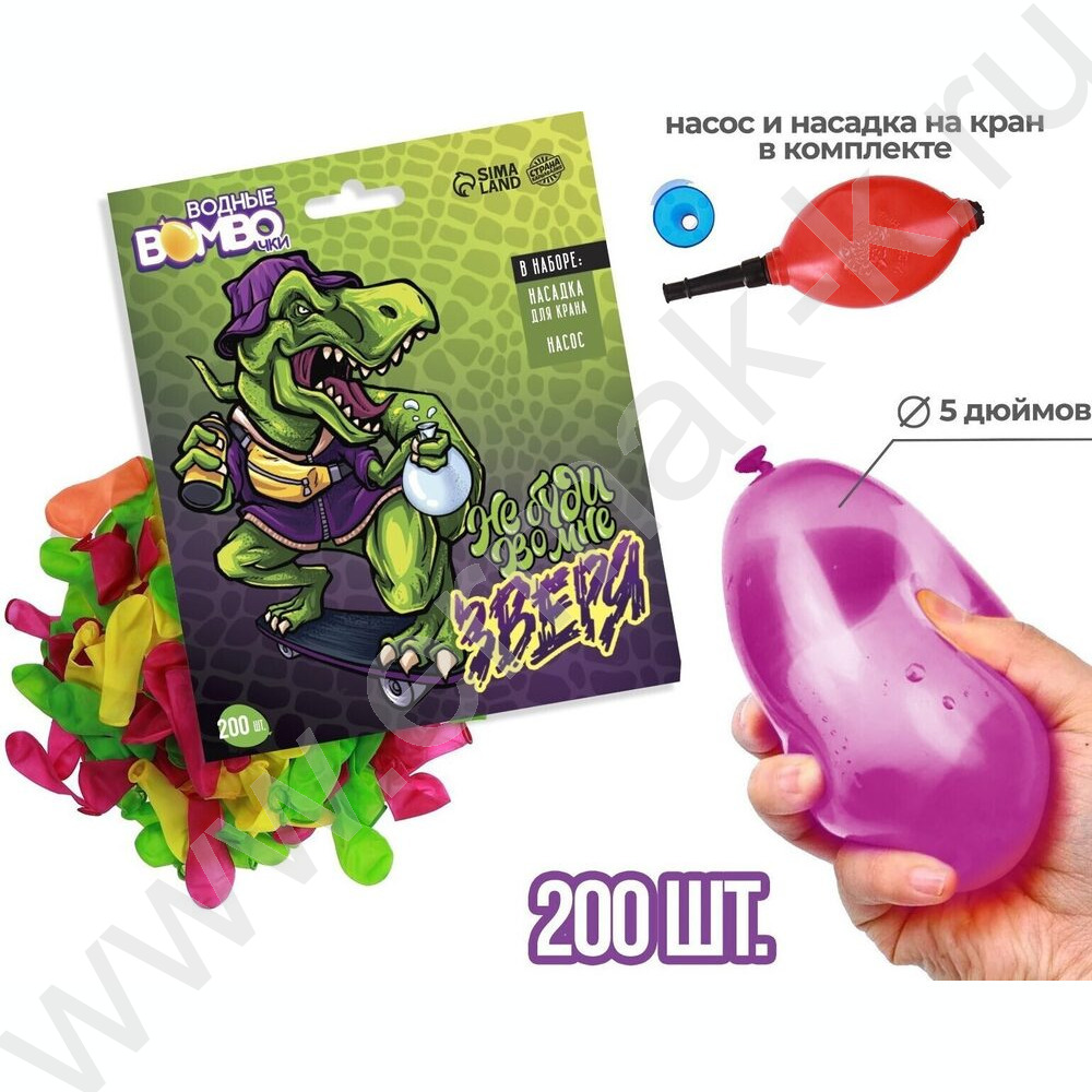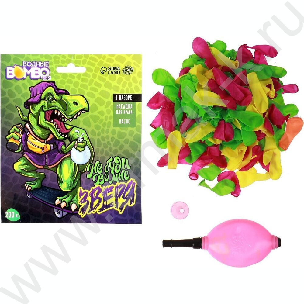 Водные бомбочки Не буди во мне зверя с насосом и насадкой 200шт. ассорти