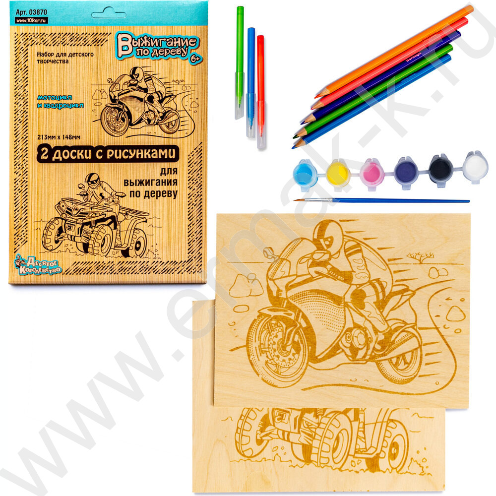 Набор д/творчества Выжигание.Доски для выжигания 2 шт "Квадроцикл и Мотоцикл" (блистер)