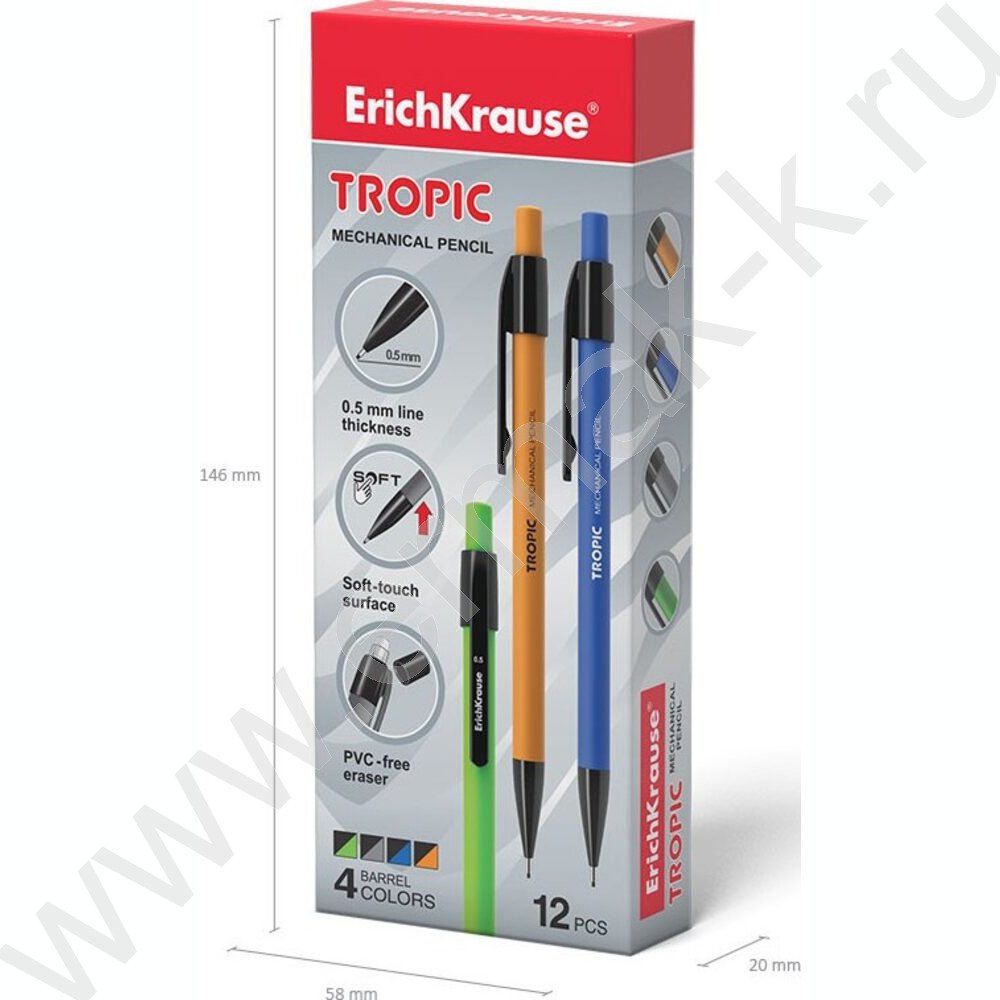 Карандаш механический 0,5мм Tropic ластик ассорти