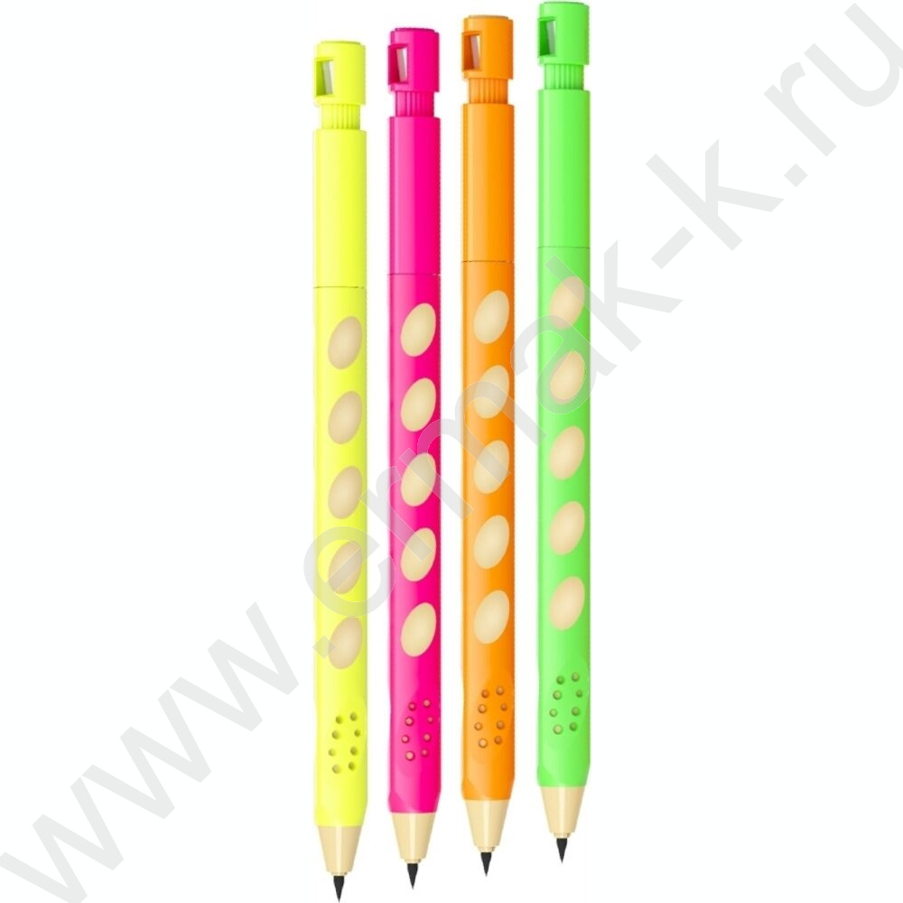 Карандаш механический 2,0мм НВ с точилкой, GripLine Neon /ассорти NEW