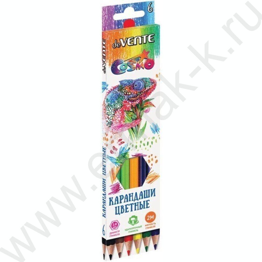 Карандаши 6цв Cosmo /шестигранные/ 2М, d грифеля-2,8мм европодвес