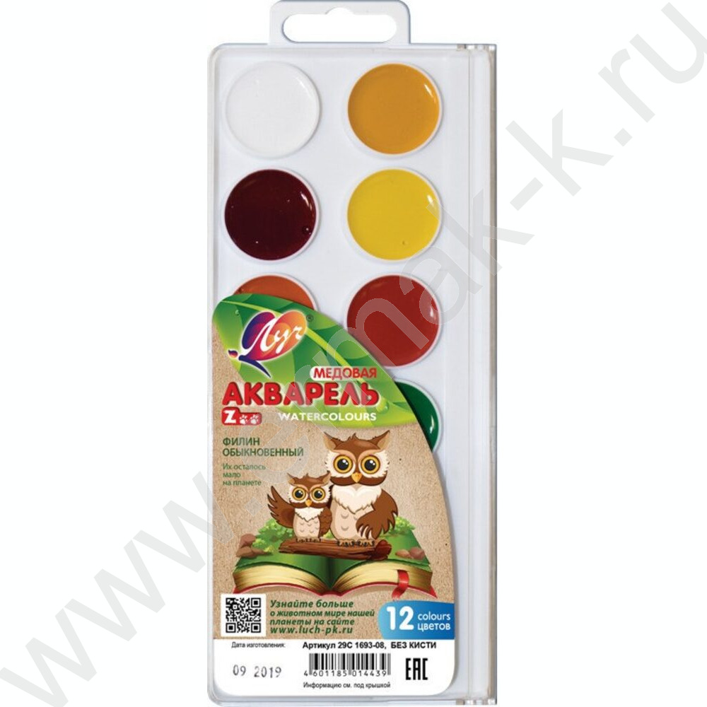 Акварель медовая 12цв ZOO б/кисточки п/у