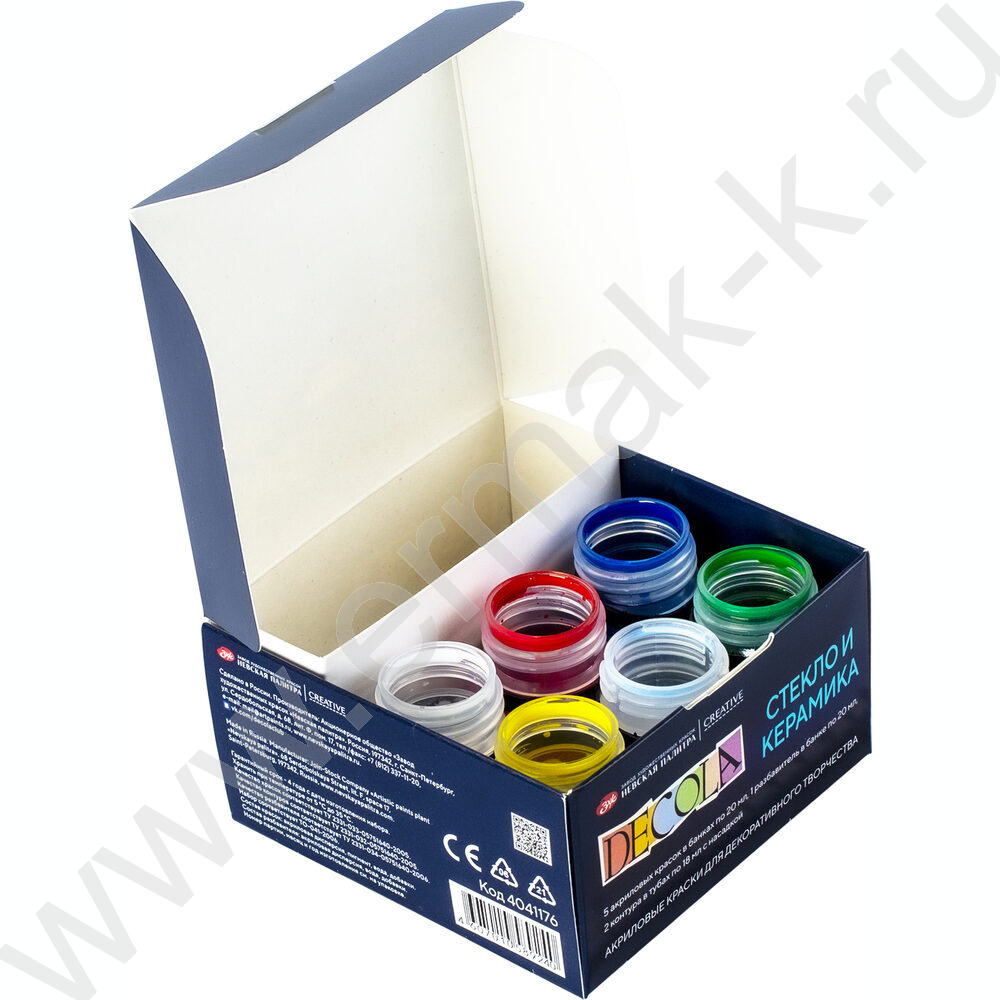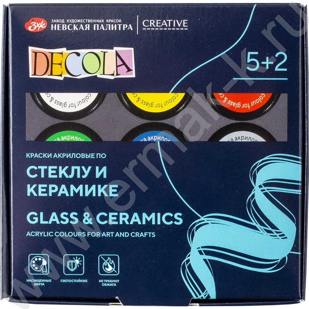 Краски акриловые 5цв 20мл+2контура+разб. Декола по стеклу и керамике