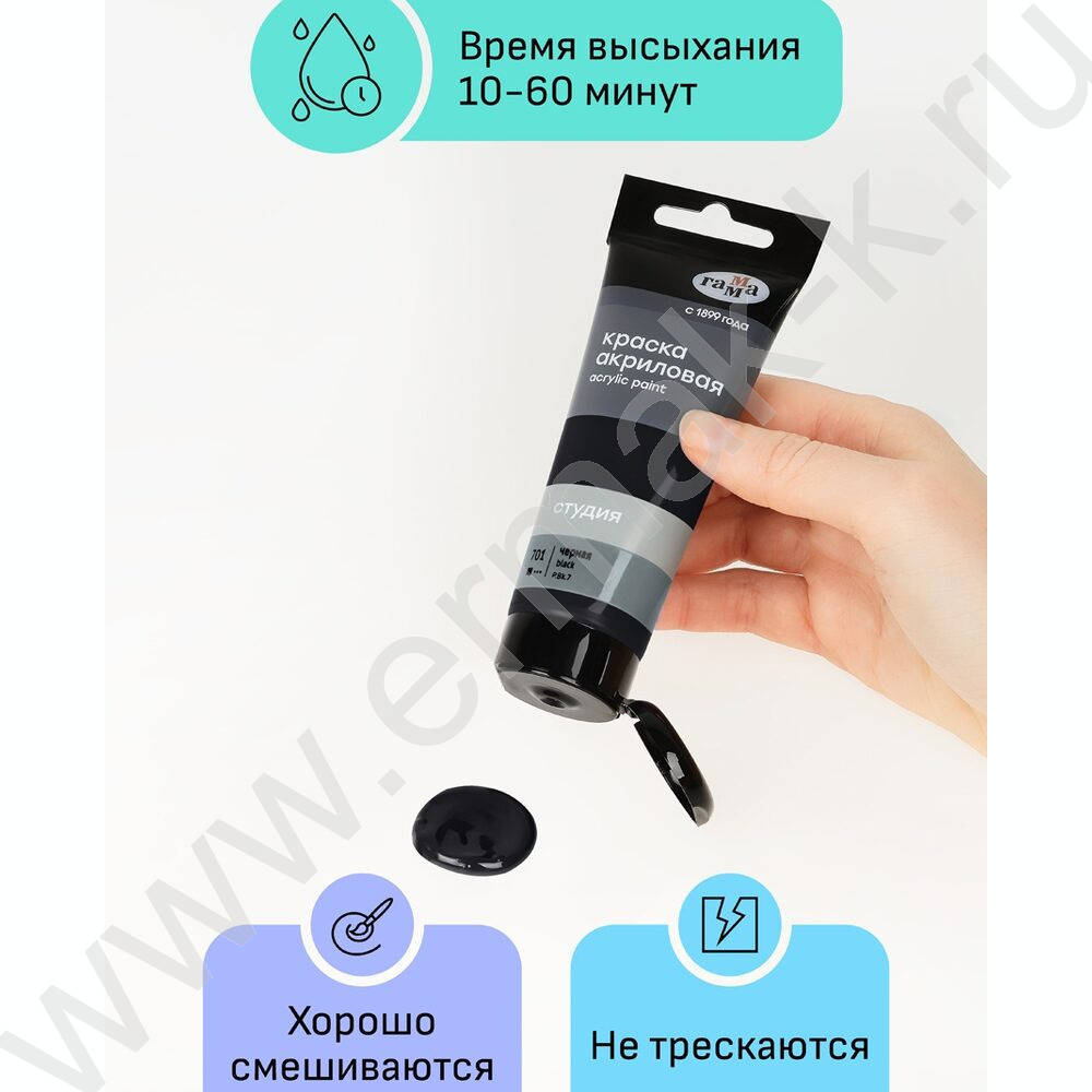 Краска акриловая 75мл "Студия", черная /пластик. туба