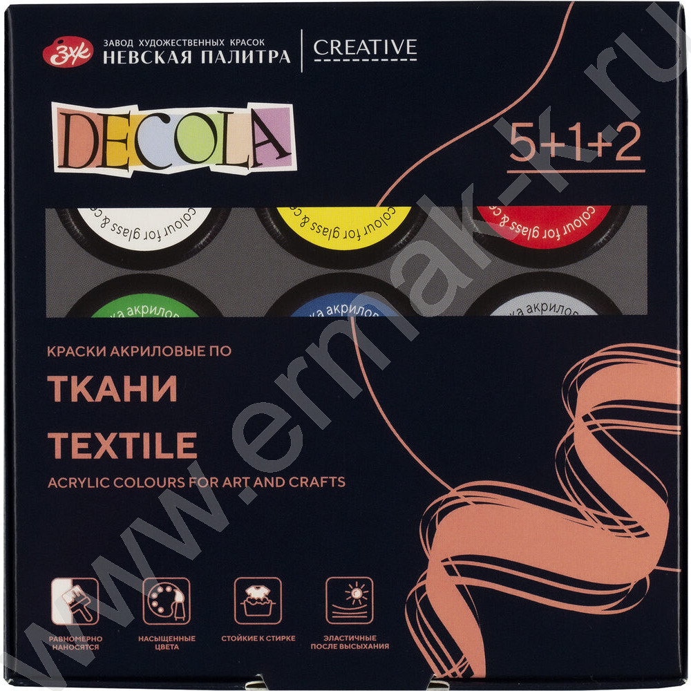 Краски акриловые 5цв 20мл+2контура+разб. Декола по ткани