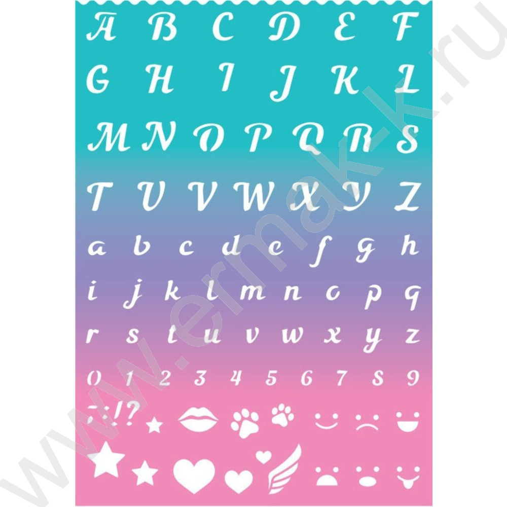 Трафарет букв и цифр /английский алфавит /цвет деграде розово-голубой