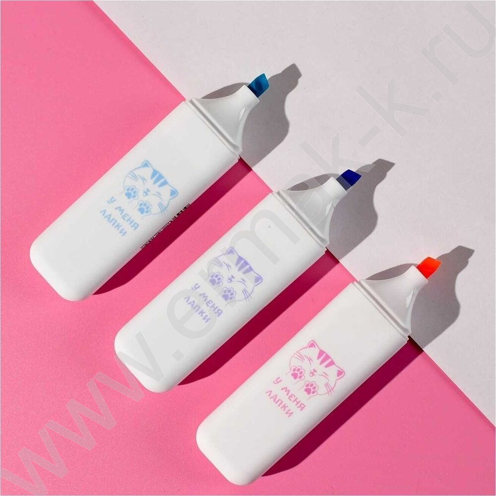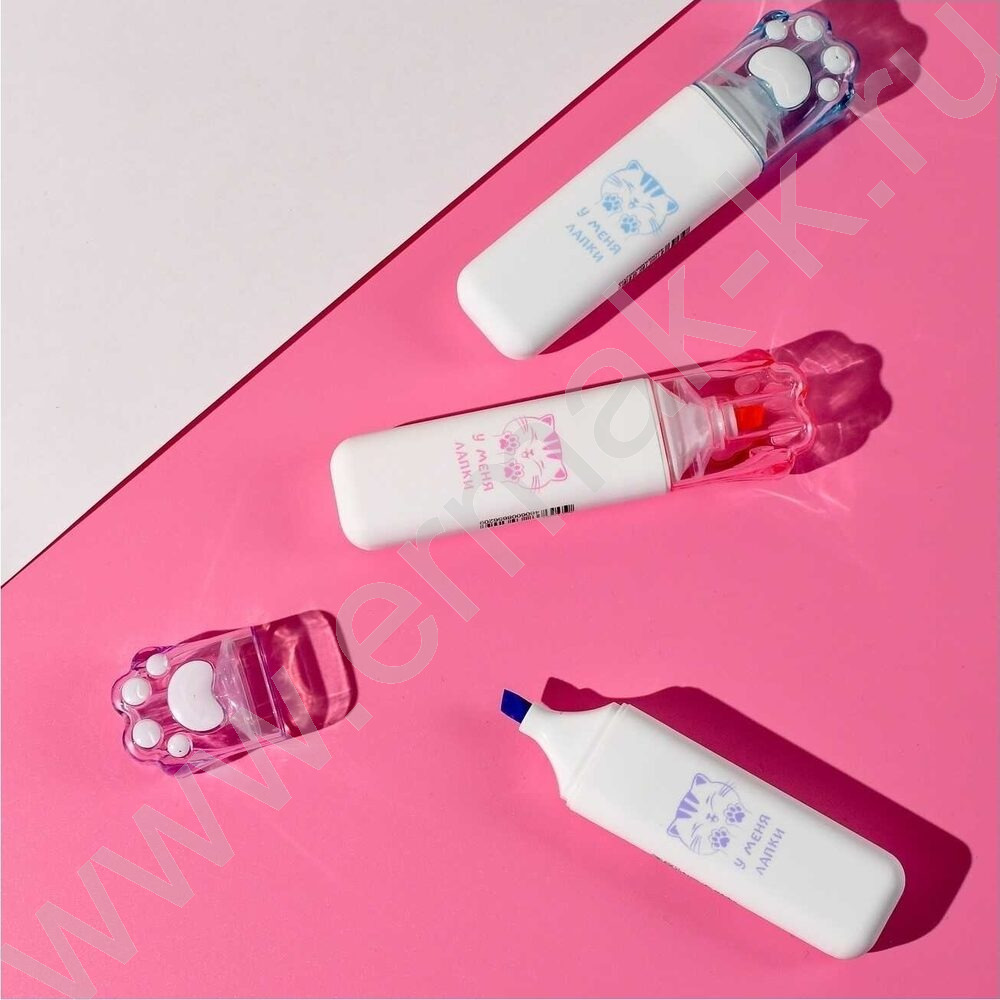 Текстовыделитель /ассорти/ косой Пушистые лапки /софт-тач покрытие,бокс 12шт NEW