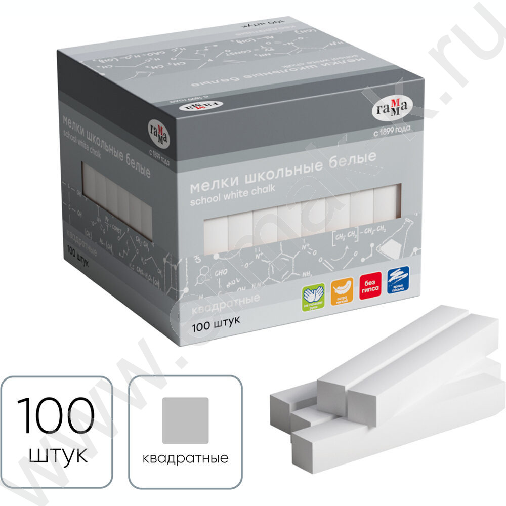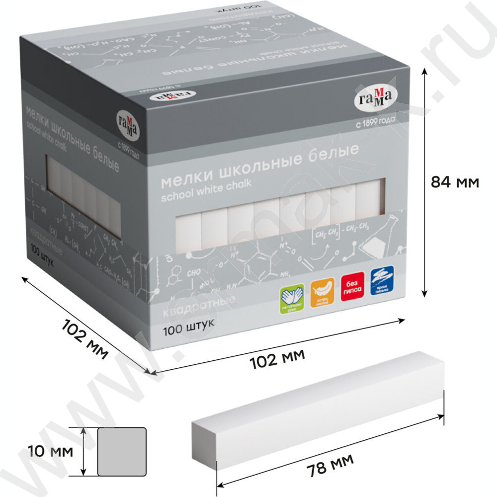 Мел белый 100шт /мягкий /квадратный /картон.кор.