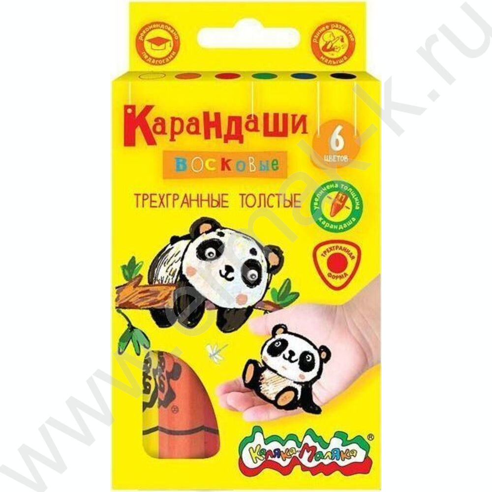 Мелки восковые 6цв Каляка-Маляка /толстые/трехгранные/европодвес