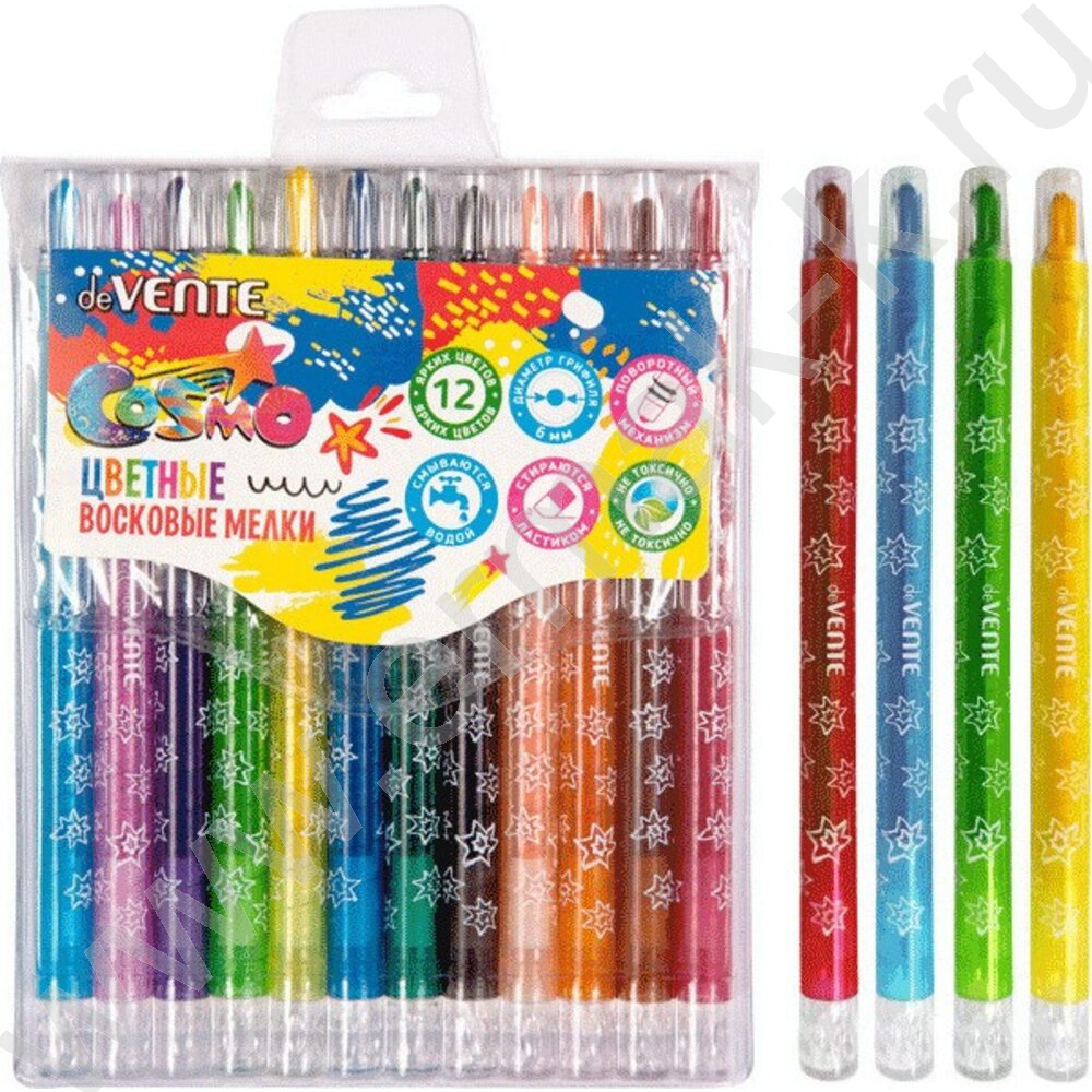 Мелки восковые 12цв Cosmo с поворотным механизмом /пласт. блистере на липучке