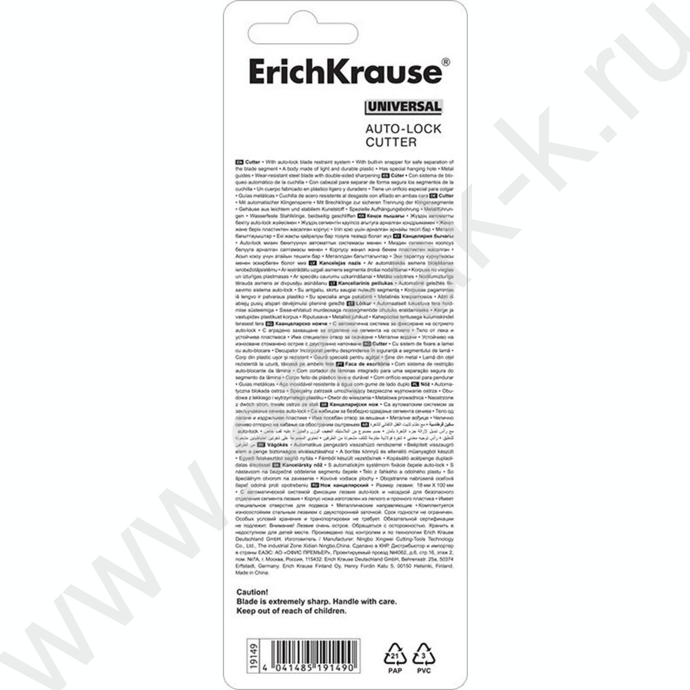 Нож канцелярский 18мм Universal жёлтый блистер,европодвес