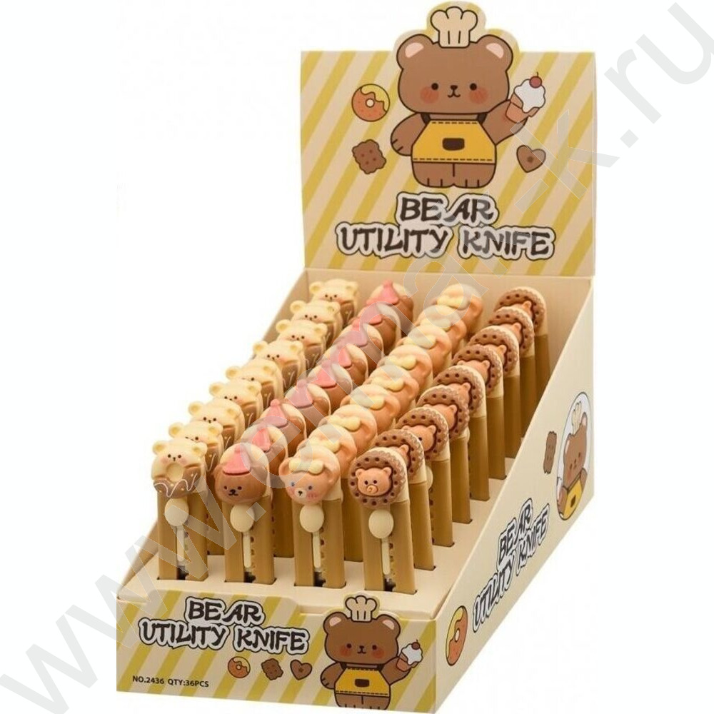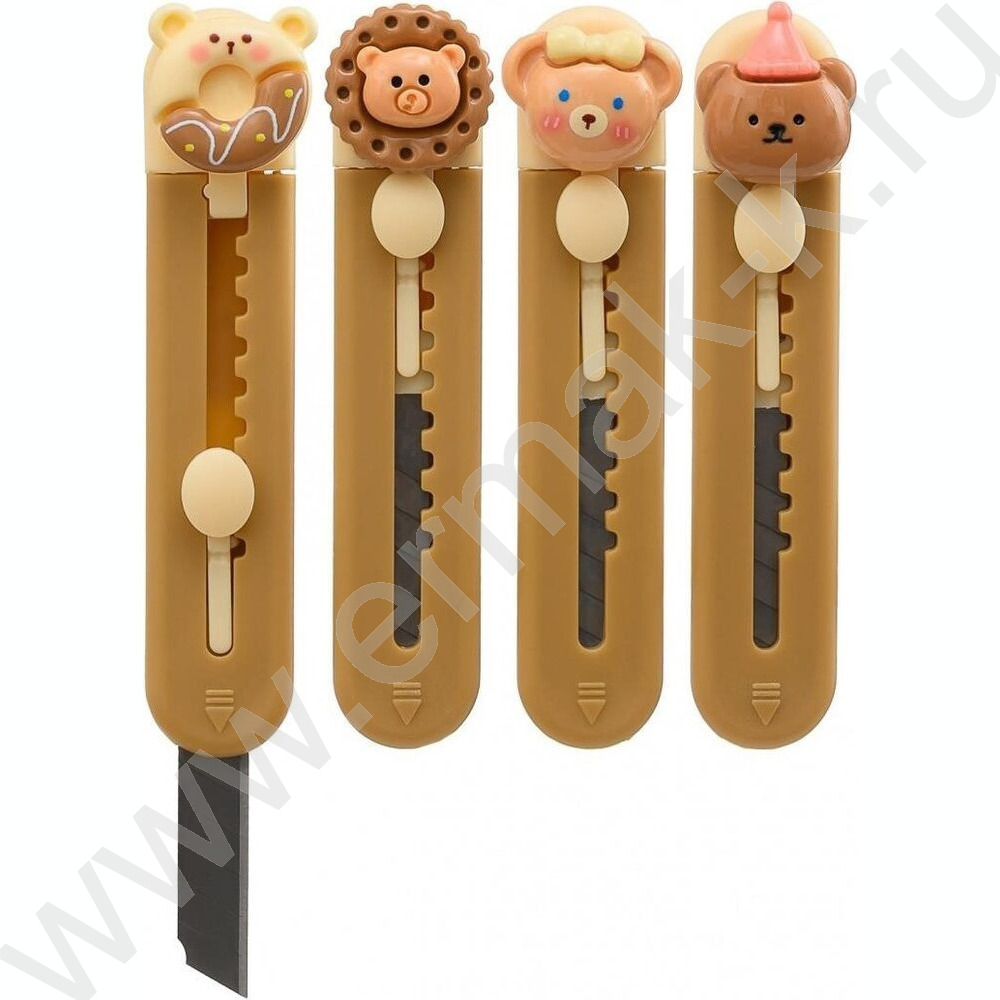 Нож канцелярский лезвие-3 см, размер 9 см Мишки/цветной пластиковый держатель с фигуркой /ассорт NEW