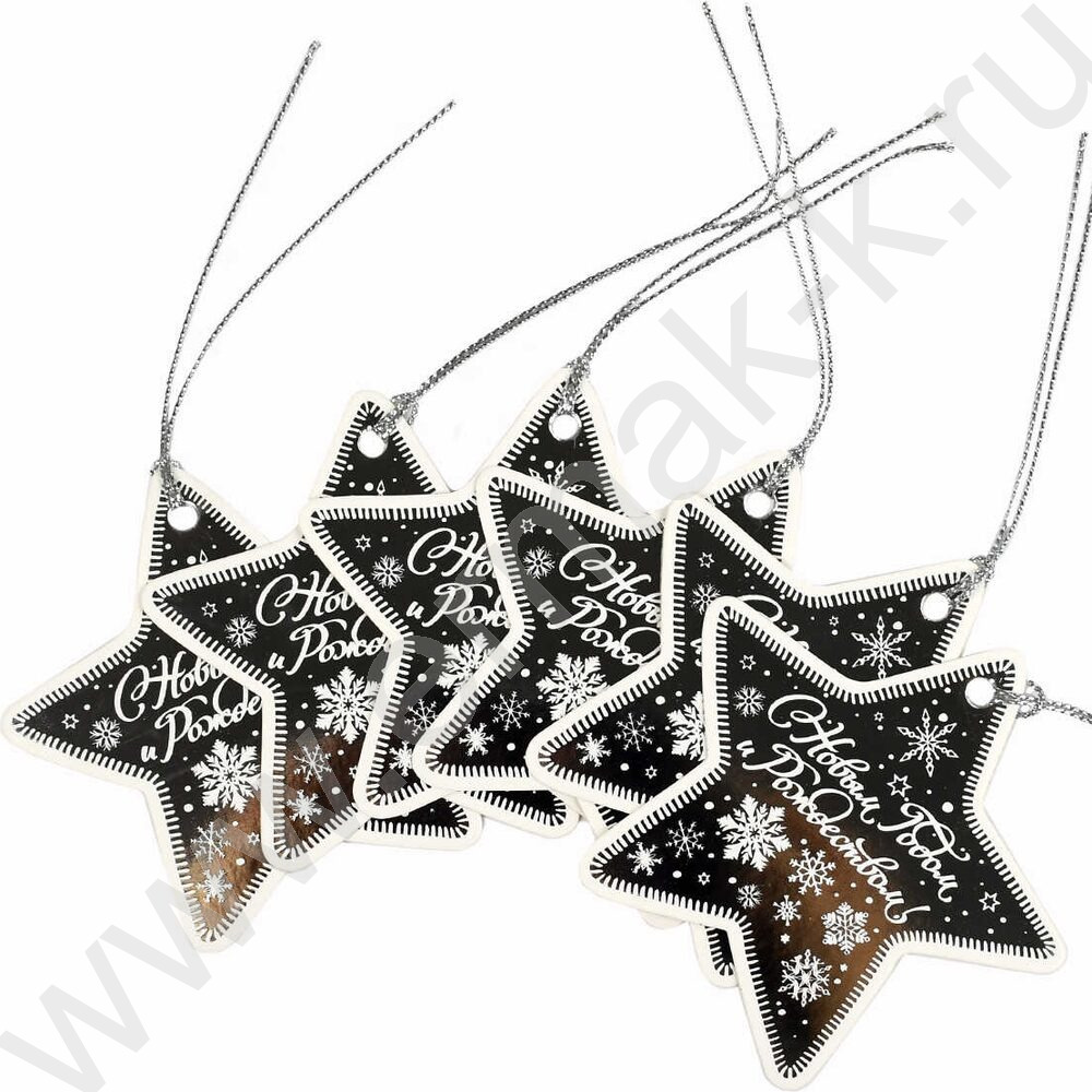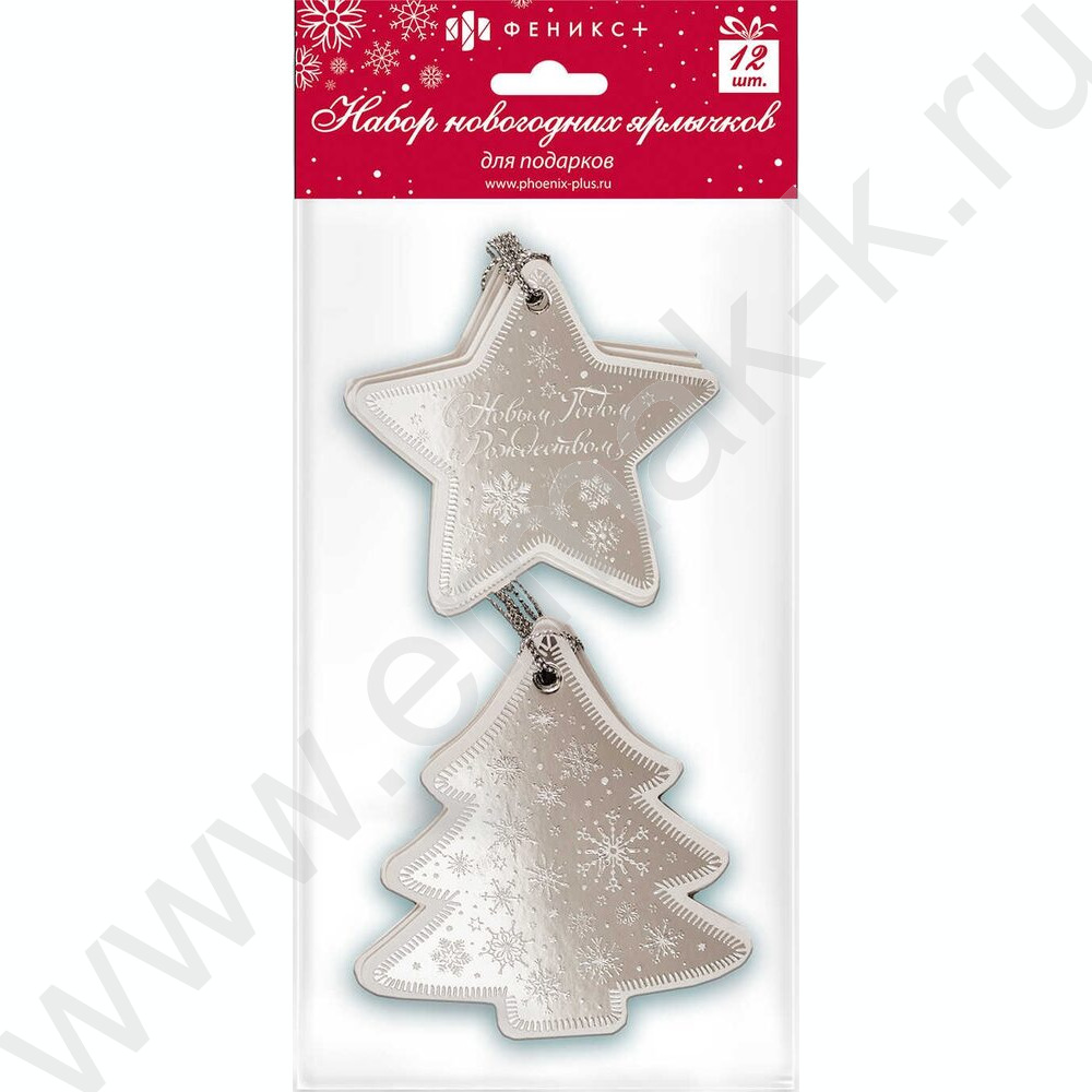 Набор подвесных ярлыков Новогодние серебро/для новогодних подарков, из картона с фигурной вырубк