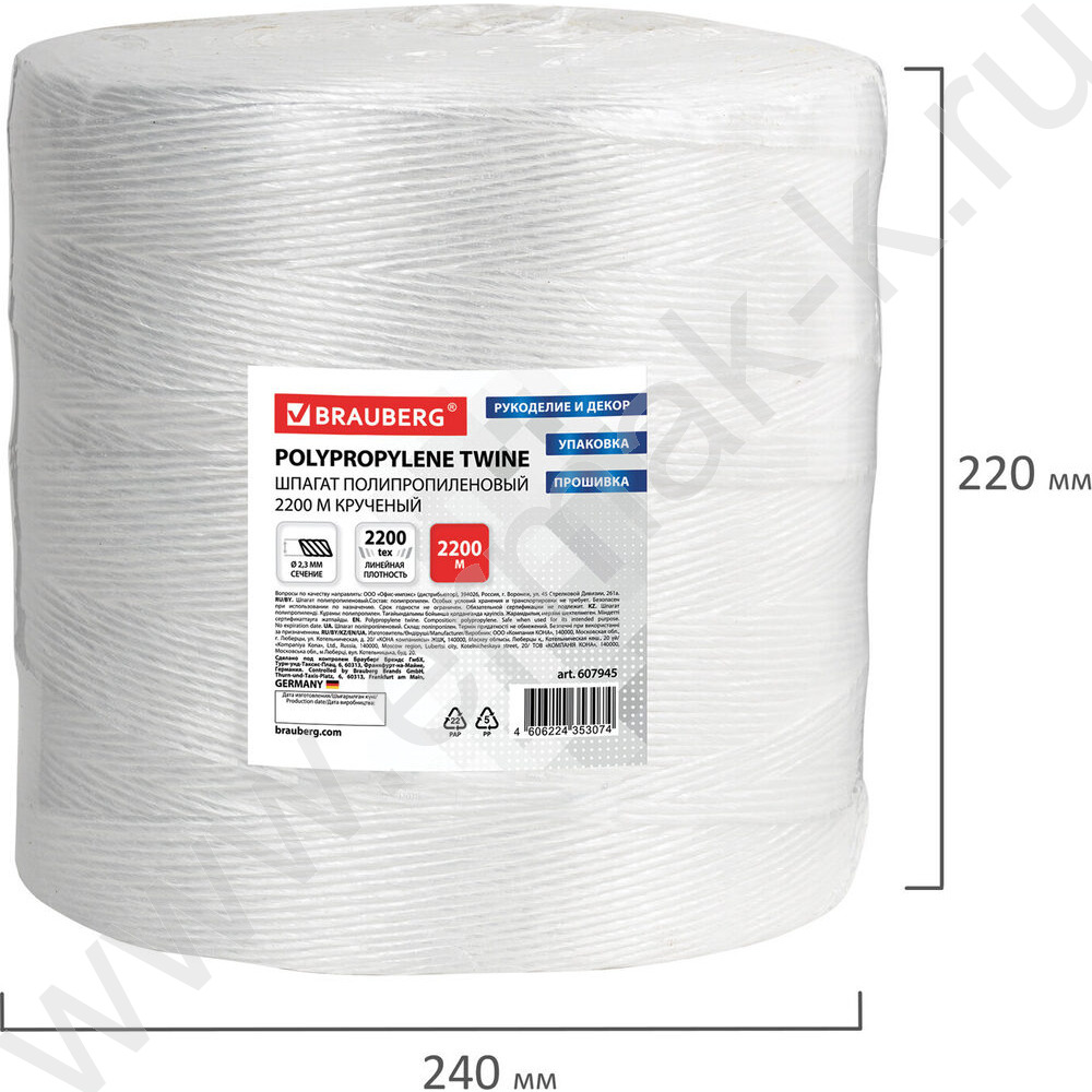 Шпагат полипропиленовый крученый /длина 2200м, диам. 2,3мм, NEW