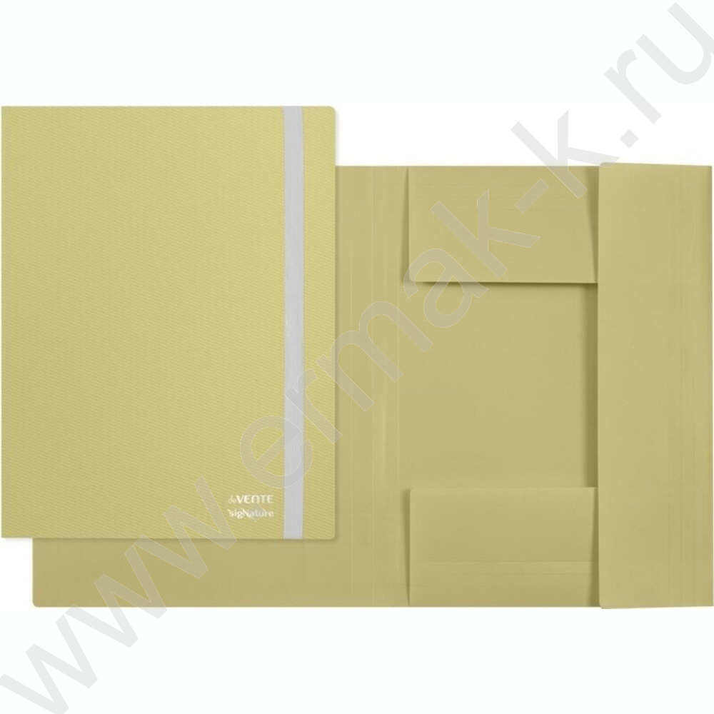 Папка на резинках sigNATURE фактура "ткань", 3 клапана, оливковая А4 0,65мм