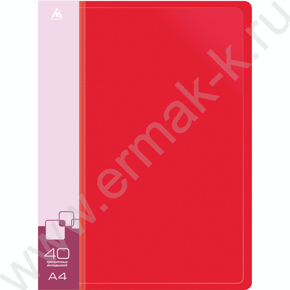 Папка 40 файлов красная 0,65мм карман торцевой с бумажной вставкой