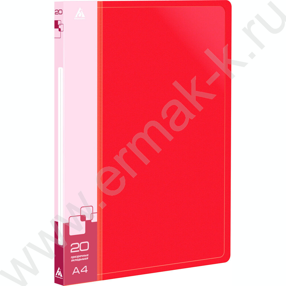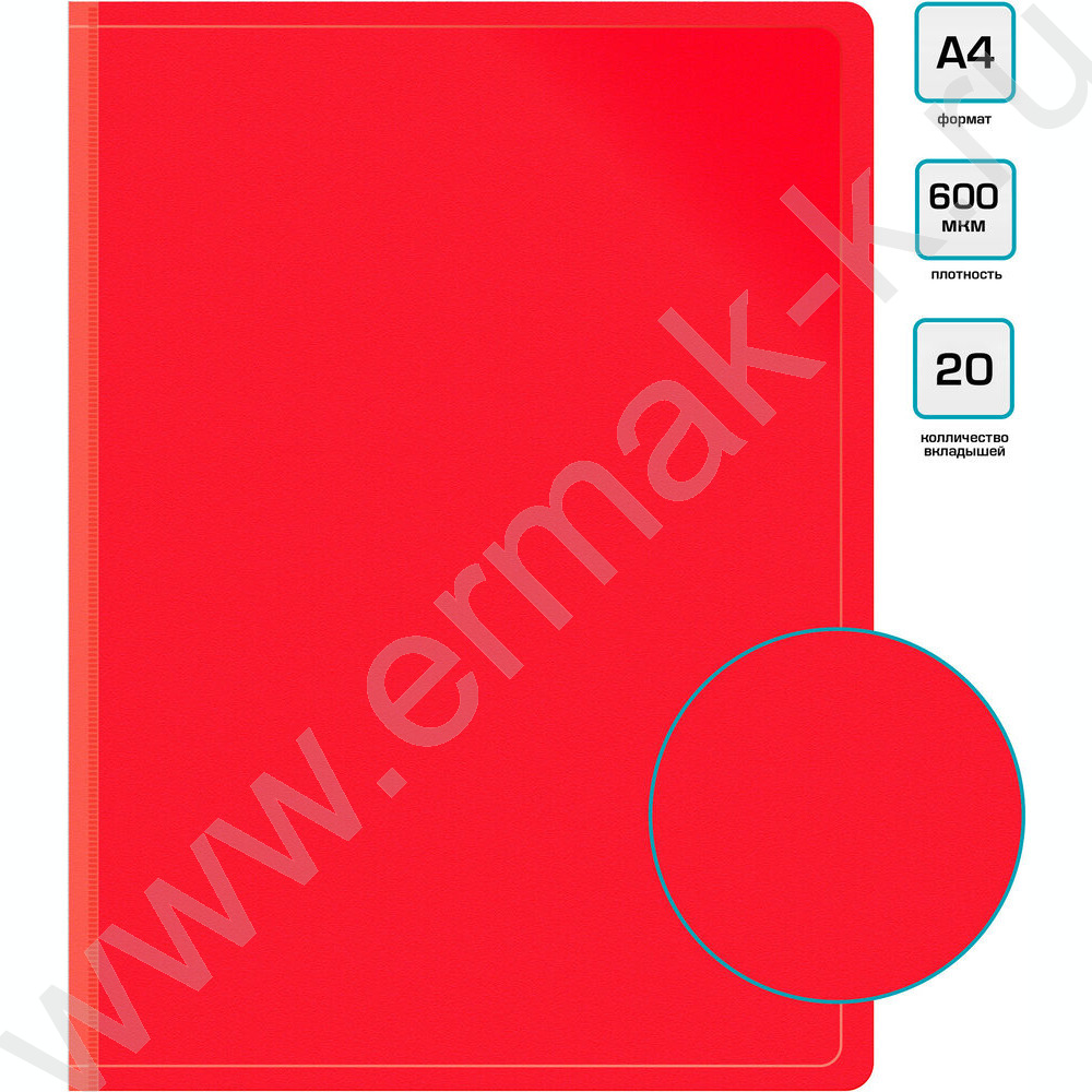 Папка 20 файлов красная 0,6мм карман торцевой с бумажной вставкой