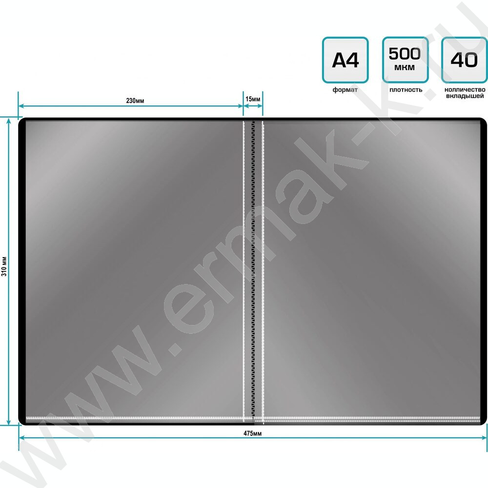 Папка 40 файлов черная /пластик 0.5мм