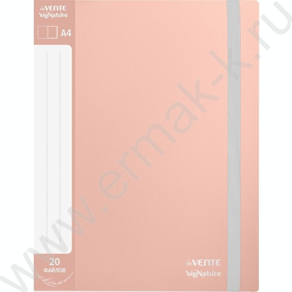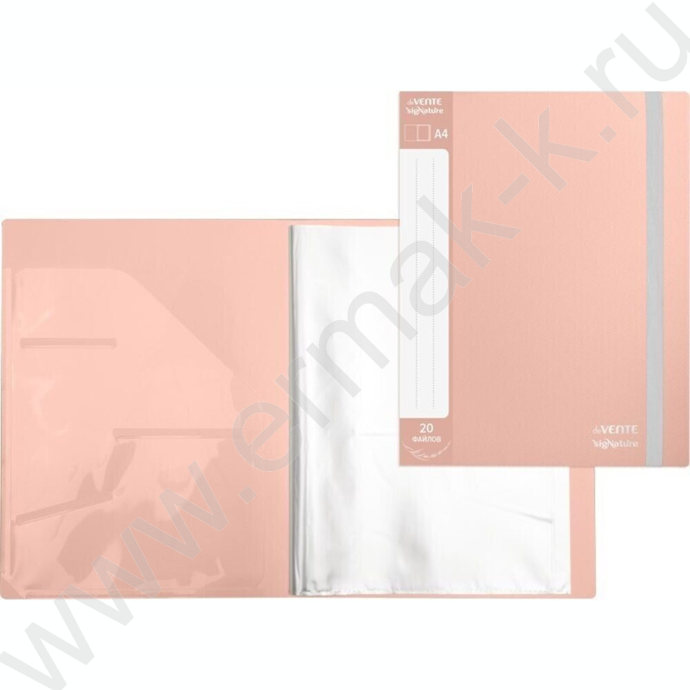 Папка 20 файлов А4 "sigNATURE" фактура "ткань" /вкладыши 30мкм, пудрово розовая NEW