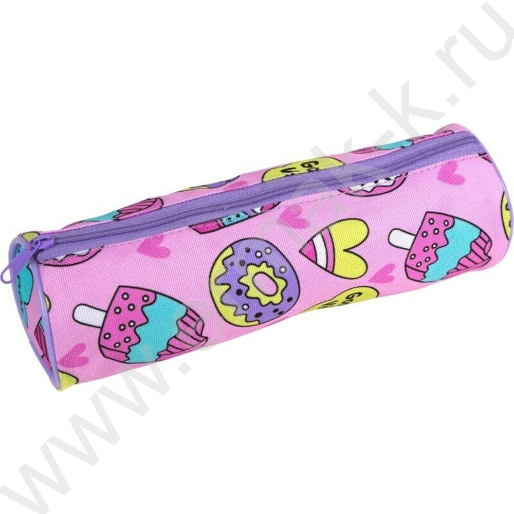 Пенал-круглый 21*6*6см "Happy", молния, текстильный /ассорти