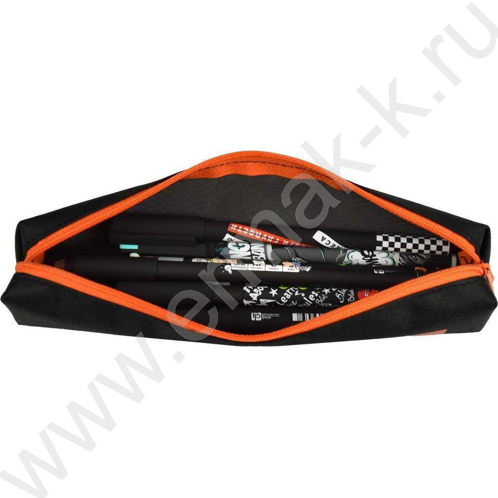 Пенал школьный полиэстер молния "Чёрный с оранжевым" шелкография