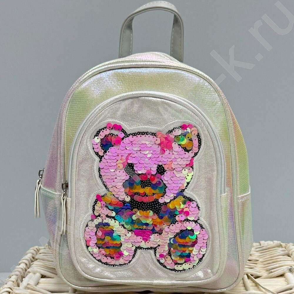 Рюкзак 24*21*10см. "Медвежонок" пайетки /белый