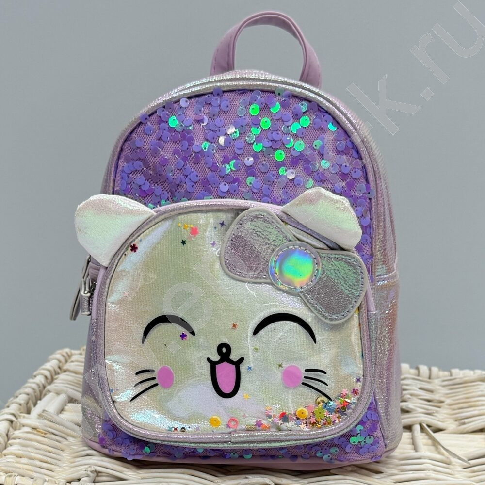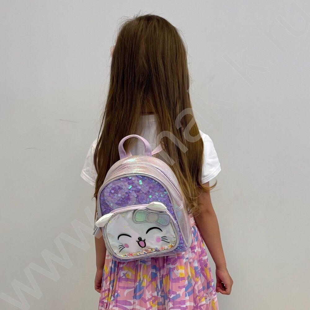 Рюкзак 21*20*10см. "Котенок" пайетки /сиреневый
