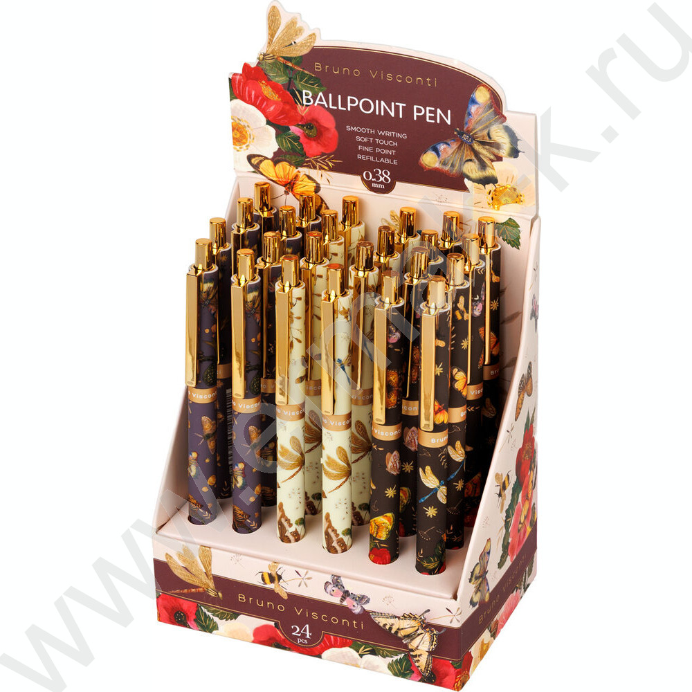 Ручка шар авт FAUNA.Бабочки /пл. SOFT TOUCH корп./ цвет чернил синий 0,38мм NEW