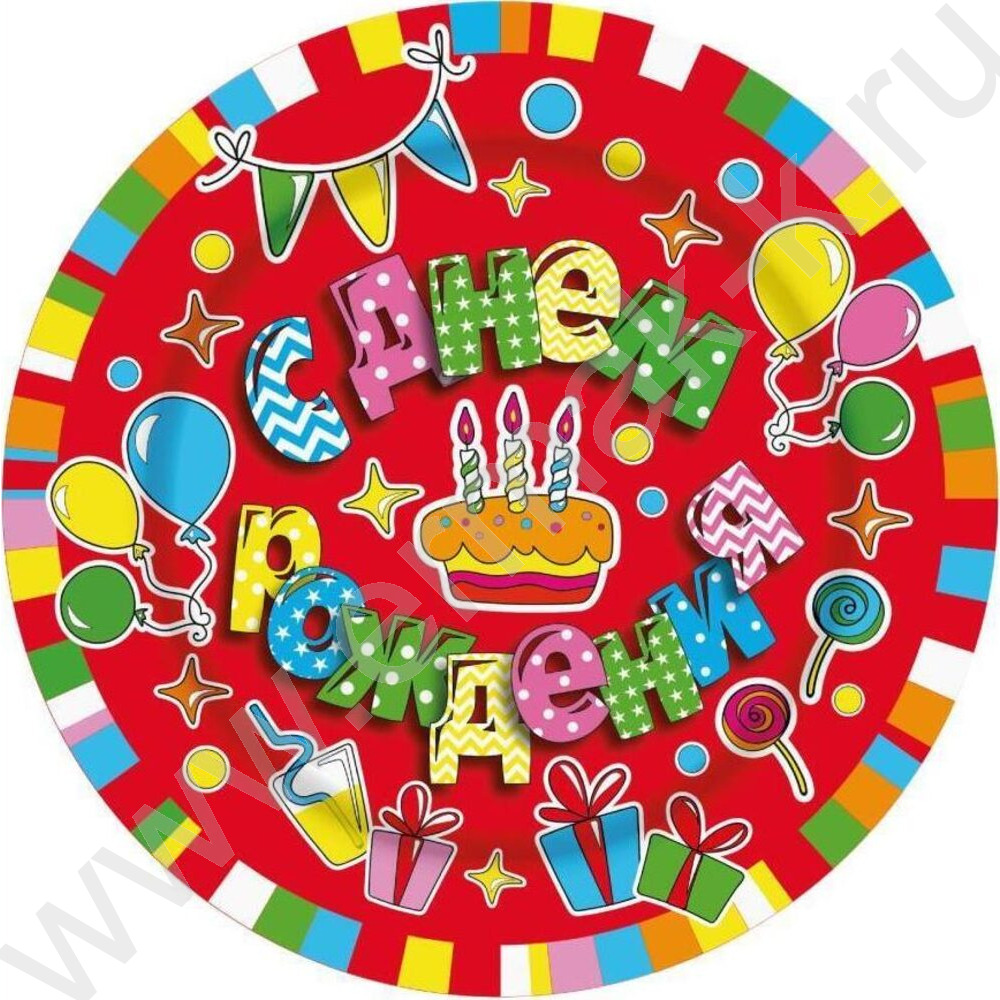 Тарелка бумажная 18см/6шт С Днем рождения Торт